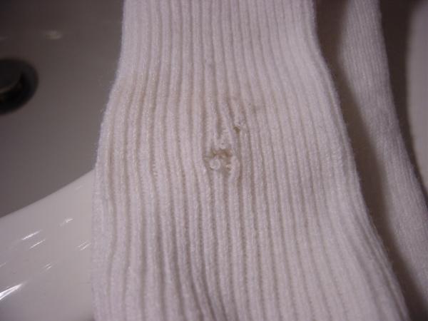 The hole in my sock left after the dog bite: